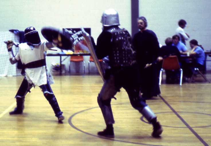 Fighting demo at Shakercon. Michael the Lucky vs. Charles of Galway. Gallowglass marshalling. Cormak na Gunn vs. Lord Robert de Spencer. Again, Gallowglass is marshalling.