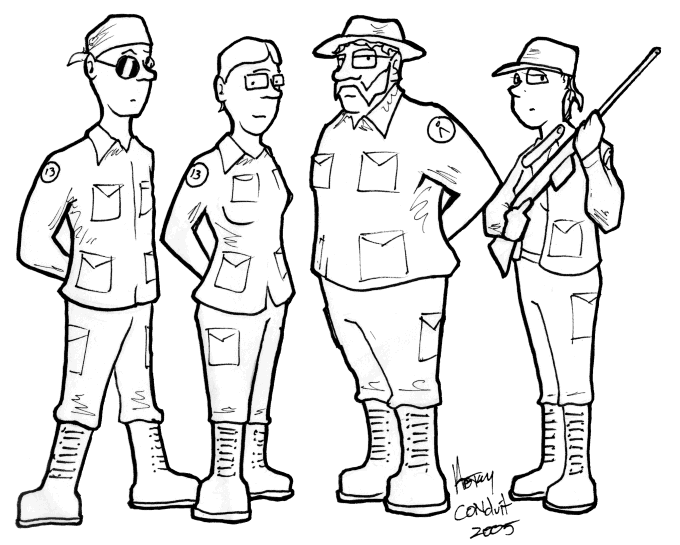 This particular incarnation of Stargate SG-13 is a group of gamers who have been playing Traveller (some of us for decades) and decided to play a Stargate version of Traveller. We started with Andy Slack's Stargate SG-13 rules for GURPS Lite (http://andyslack.wordpress.com/category/campaigns/inactive/stargate-sg-13/) and adapted the rules further for Traveller. This version of SG-13 is a large team (much larger than the four-person teams generally seen on Stargate SG-1--we say it's because we're an "experimental" team). Oddly enough, we now have thirteen members (not counting the Game Master). The members are: